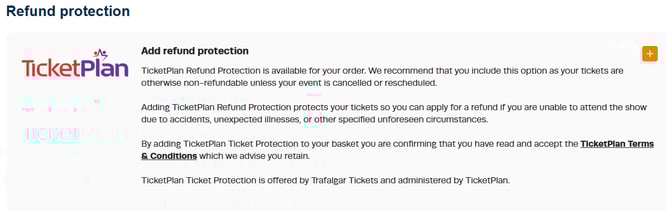 TicketPlan Refund Protection can be added to your order once you are happy with your ticket selection.